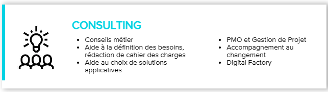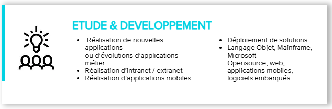 Acteur Innovant dans le domaine du conseil et de l’Ingénierie IT nous accompagnons nos clients dans l'évolution de leur système d'information.